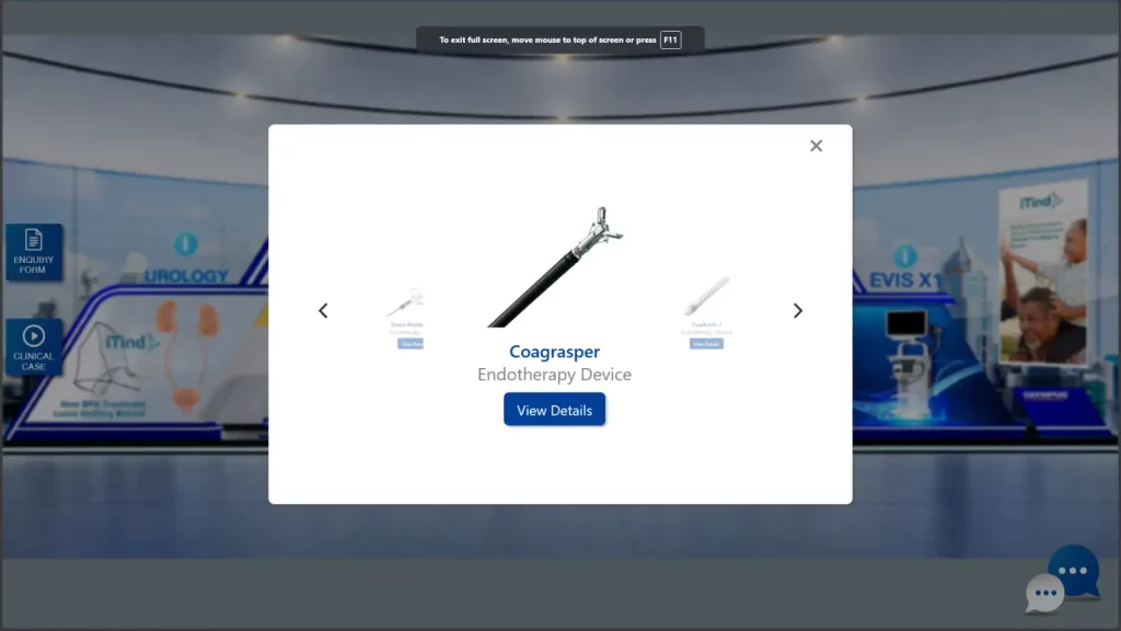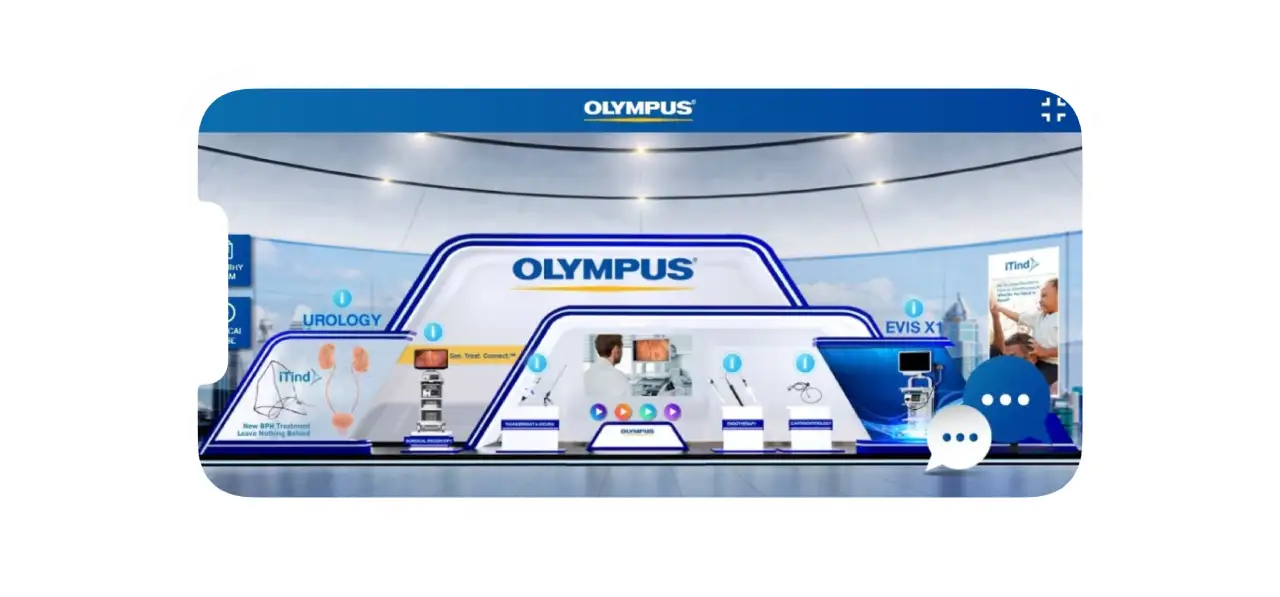 Olymed vtbooths บูธแสดงสินค้าทางการแพทย์จากบริษัท Olympus บนเว็บไซต์ในรูปแบบ 3D สัมผัสกับอุปกรณ์รุ่นใหม่ล่าสุดผ่านเนื้อหาภาพและวิดีโอสินค้าตัวอย่าง ผู้ใช้งานสามารถสัมผัสบรรยากาศการแสดงสินค้าในรูปแบบออนไลน์ได้ทุกที่ทุกเวลา
