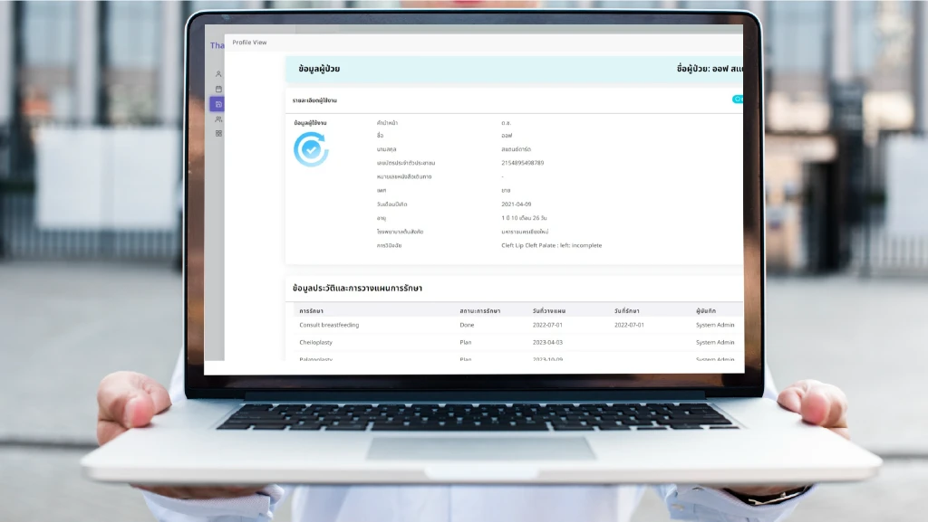 ส่วนที่ 2 Web Service พัฒนาโดยใช้เครื่องมือ Laravel Framework ซึ่งมีหน้าแสดงผลสำหรับผู้ใช้งานที่ได้รับสิทธิ Admin ใช้สำหรับการจัดการข้อมูลผู้ใช้งานและเพื่อเชื่อมต่อกับส่วนที่ 3 Web Service Treatment Guidelines ที่สามารถคาดการณ์การรักษาของผู้ป่วยได้เมื่อกรอกรายละเอียดของผู้ป่วย เช่น การวินิจฉัยโรค อายุ และหัตถการ รวมถึงการรักษาที่เคยได้รับการรักษามาแล้วและบันทึกข้อมูลลงในฐานข้อมูลที่ปลอดภัย ทั้งสามารถจัดเก็บและเรียกคืนกรณีที่เกิดปัญหาต่างๆ เช่น การโจมตี